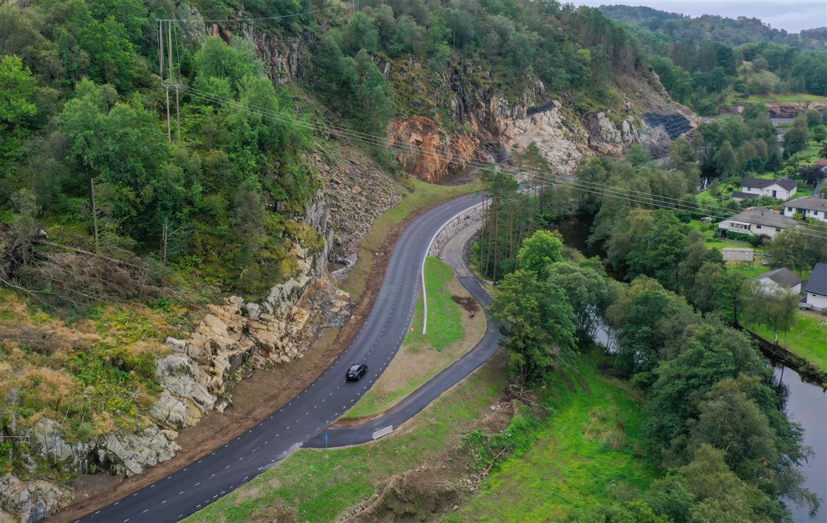 Den gamle veien på høyre side, er nå gang og sykkelvei.