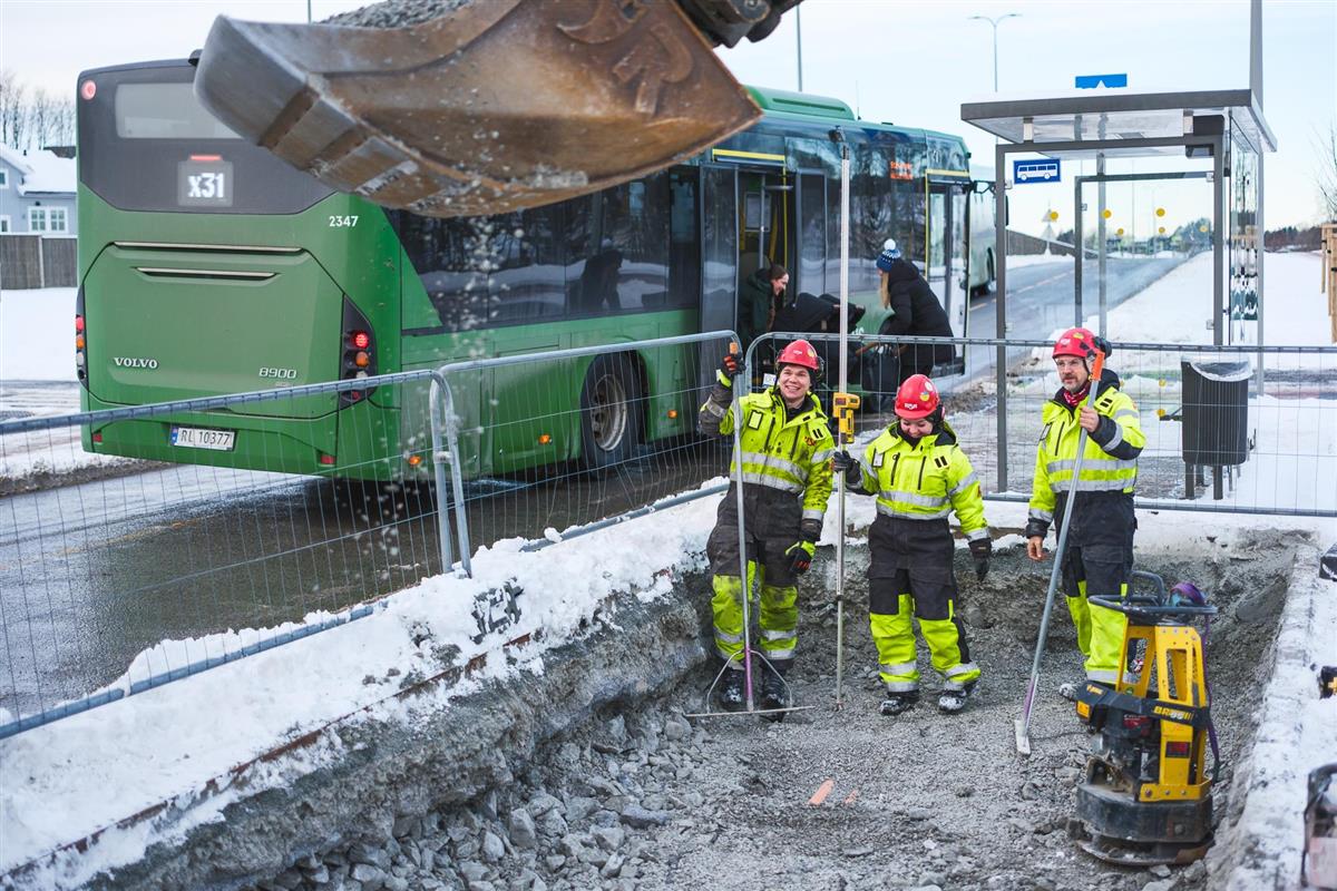 – Vi jobber trinnvis for å sikre god fremkommelighet. Bussene skal komme forbi, og vi forsøker så langt det lar seg gjøre at holdeplassene skal være i bruk mens vi bygger om, sier Stangeland.