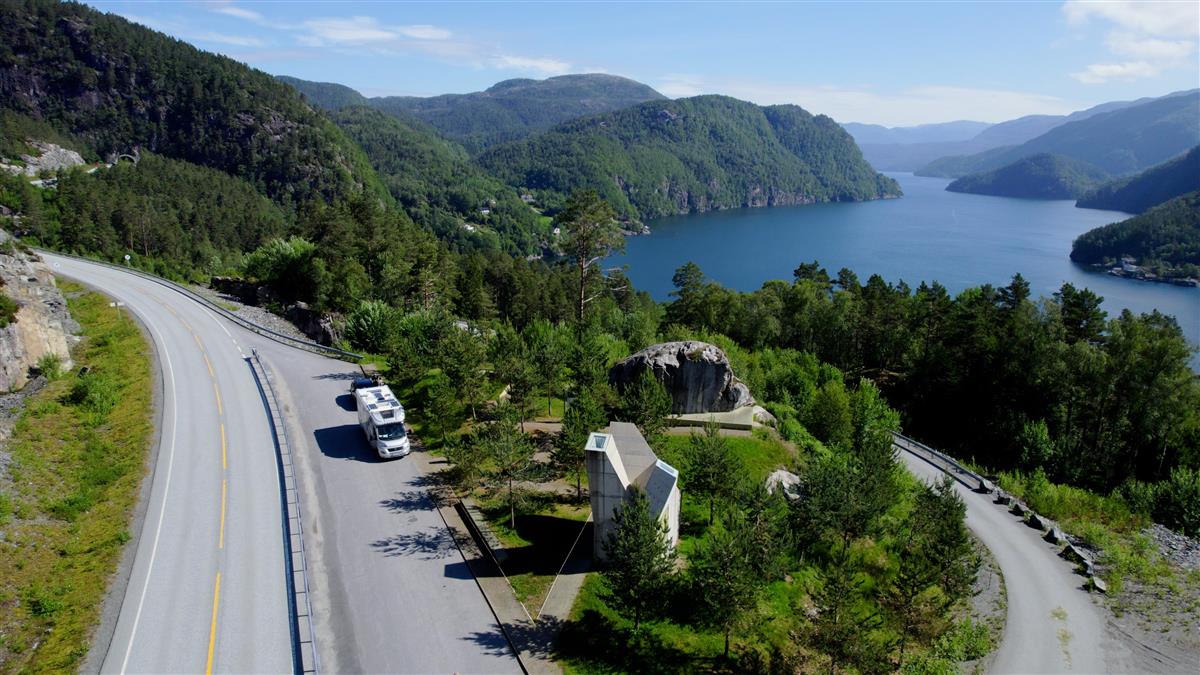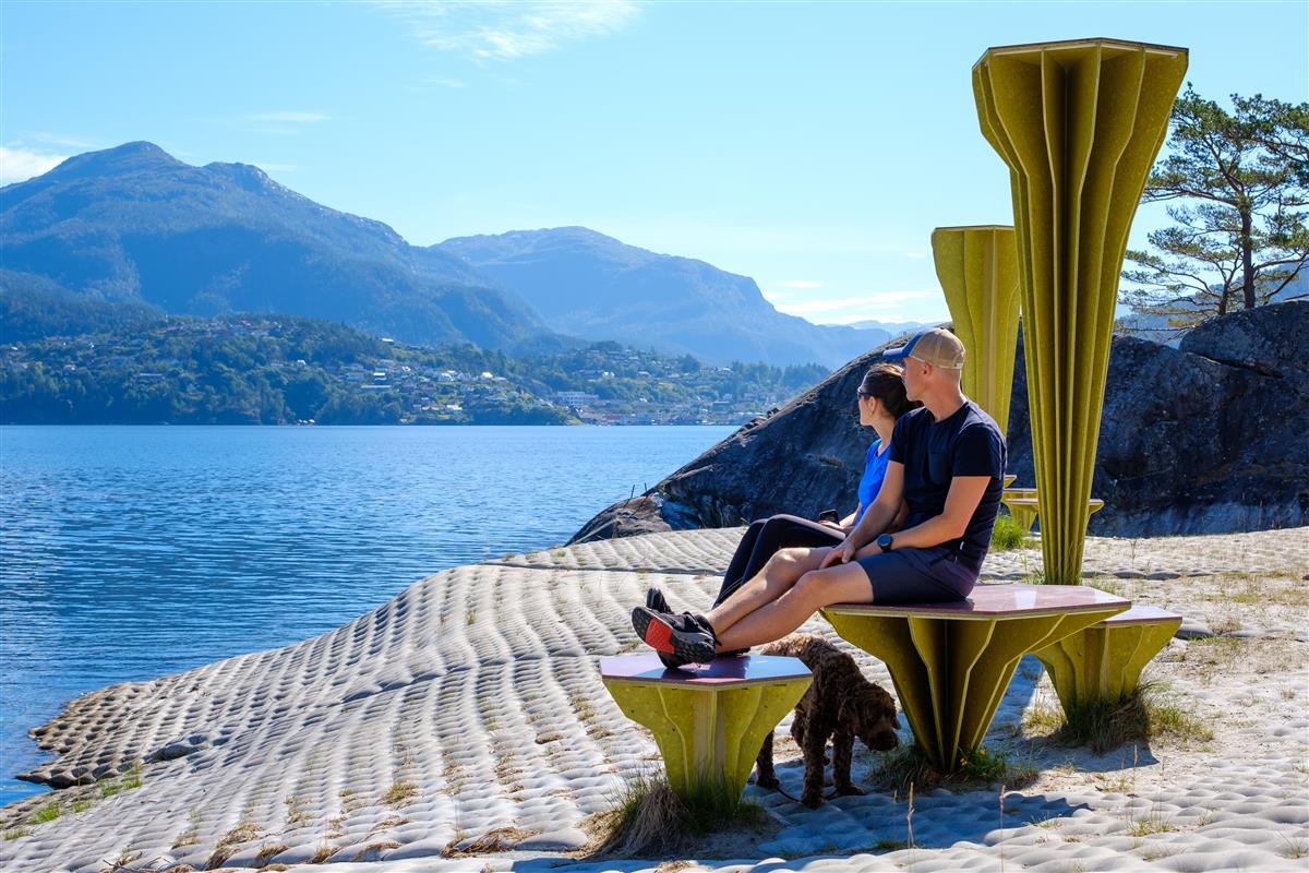 Rasteplassen Ostasteidn dukker opp på vestsida av Sandsfjorden, rett etter Sandsfjordbrua.