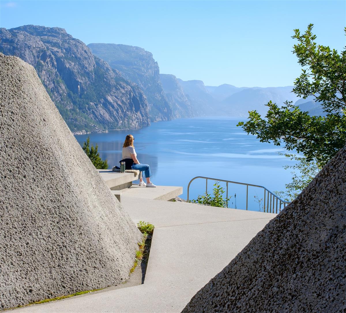 Utsiktspunktet ligger i et landskap der den norske kunstneren Lars Hertervig hentet motivene sine fra, og arkitekturen på plassen er inspirert av kunsten til Hertervig. En gangvei fører til sitteplasser som vender mot nord med nydelig utsikt innover Sandsfjorden eller til en benk ved knausen med le for vinden.