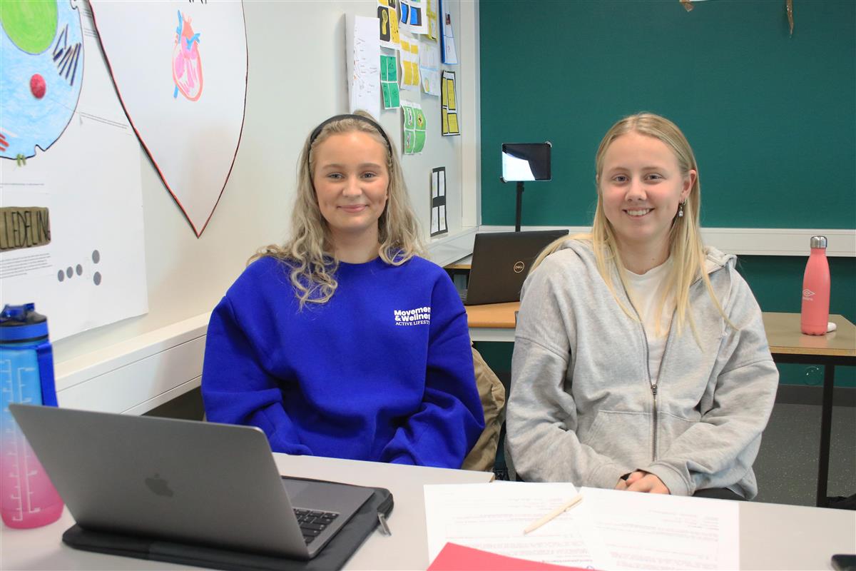 På første rad sitter elevene Heiley Bendiksen (16) og Sara Mong-Olsen (16). De synes det er spennende at skolen er med i et så stort og viktig forskningsprosjekt som INTERACT.