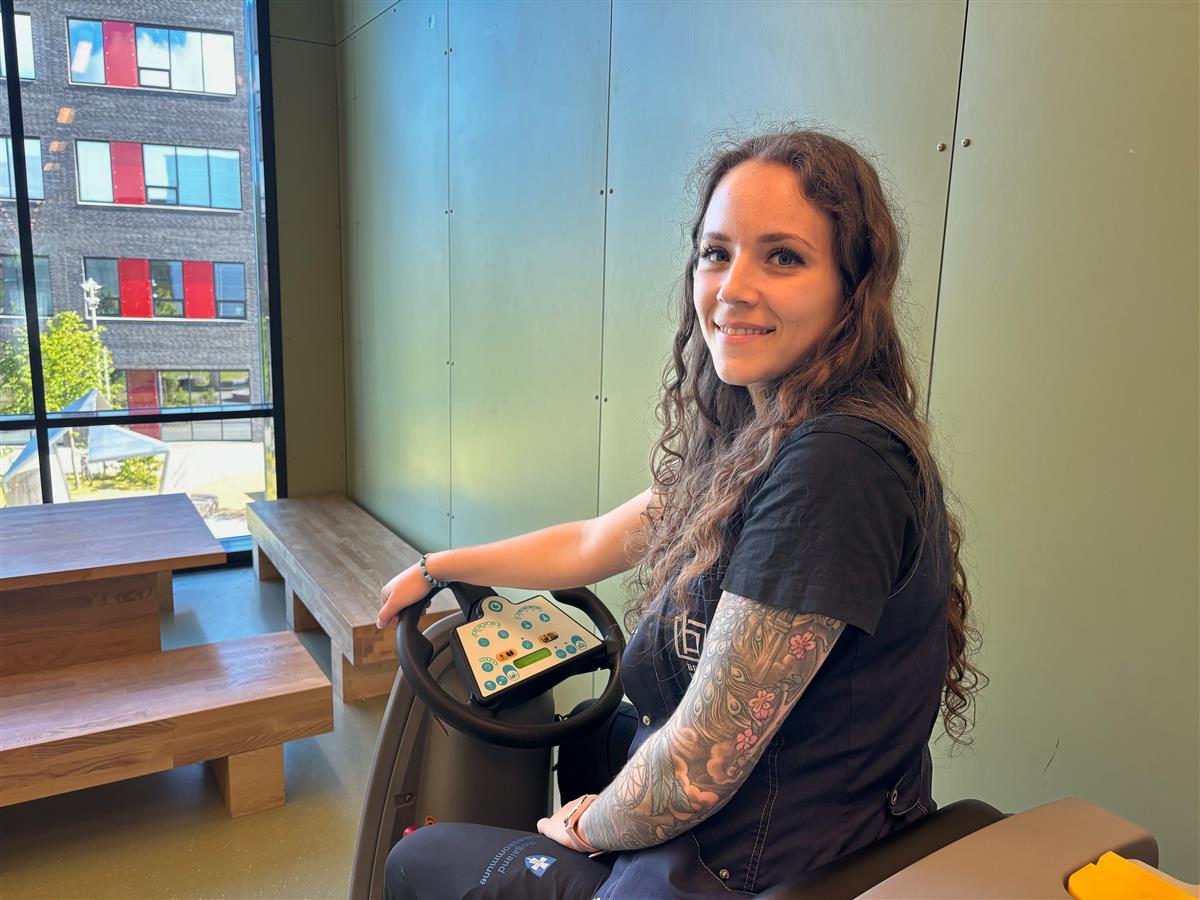 – Det er ny teknologi, maskinelt renhold, kjemikalieblandinger og det rent renholdsfaglige. I tillegg er du en del av et stort arbeidsmiljø med elever, lærere og andre ansatte ved skolen. Det er ganske sammensatte dager på jobb, egentlig, forteller Ida Oline.