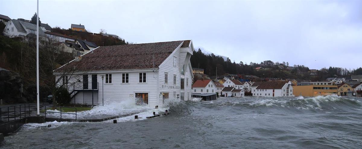 Kulturbaserte løysingar innebærer å lære av vår kulturarv i klimatilpassingsarbeidet, til dømes av tradisjonell byggeskikk når me skal bygge framtidsretta og tilpassa bygg for framtida klima. Her fra då stormen Nina var på besøk på Sand i 2015.
