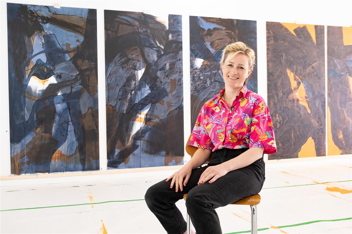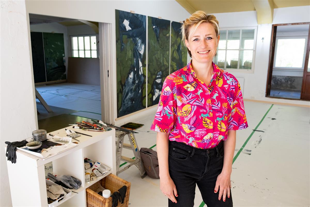 Billedkunstner Maiken Stene får Rogaland fylkeskommunes kulturpris 2025. Her er hun i atelieret på Velferden i Sokndal.