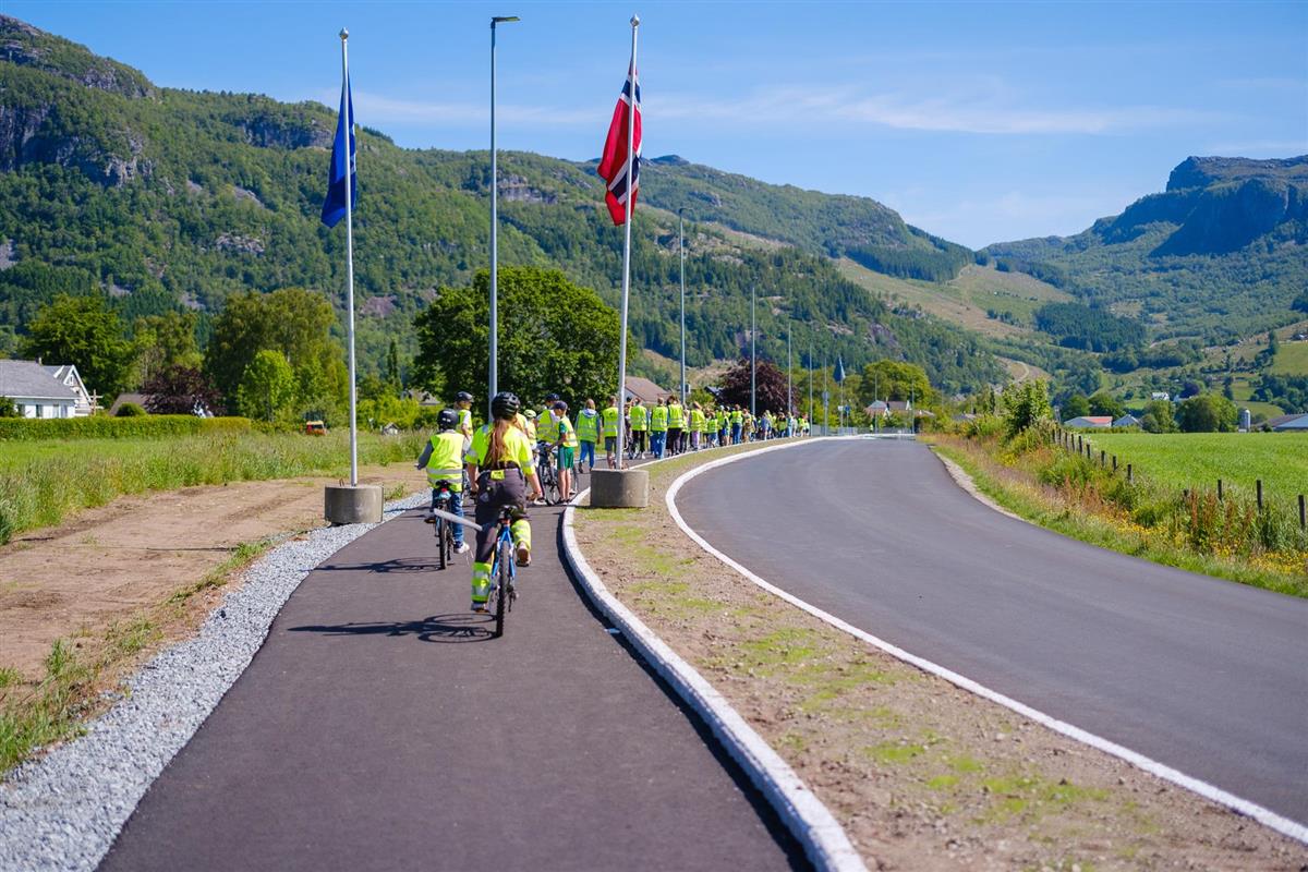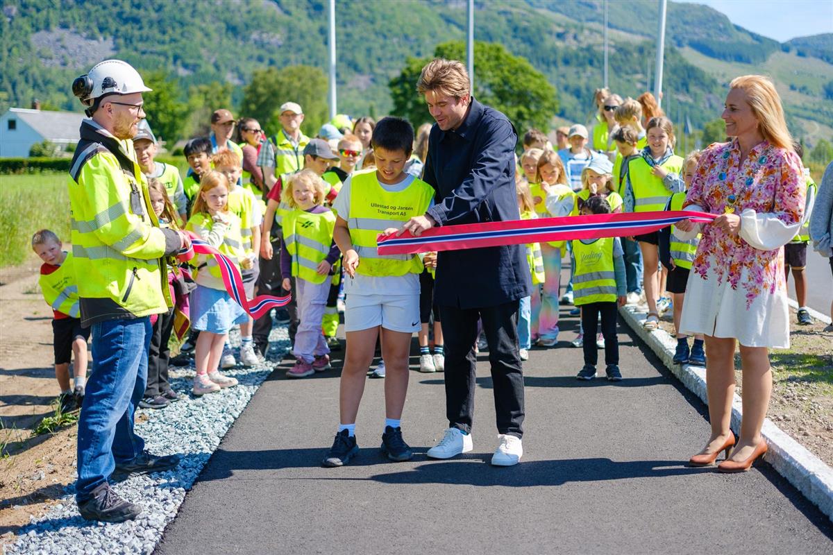– Det er utrolig kjekt å få klippe snoren for denne viktige gang- og sykkelveien, som gjør det tryggere for mange barn å gå til og fra skolen, og som kommer hele lokalsamfunnet her i Årdal til gode, sa Lasse Fredheim, leder for samferdselsutvalget i Rogaland fylkeskommune under åpningen av ny gang- og sykkelvei i Årdal.