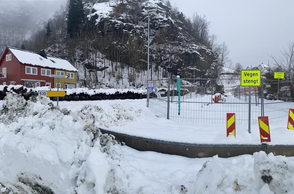 Vegen er stengt mellom Solbrekk og Brekkebakken mens arbeid for å lage fortau pågår.– Vi lover å ikke holde veien stengt lenger enn det som er høyst nødvendig, sier prosjektleder i Rogaland fylkeskommune, Gro Osmundsen Kyvik.