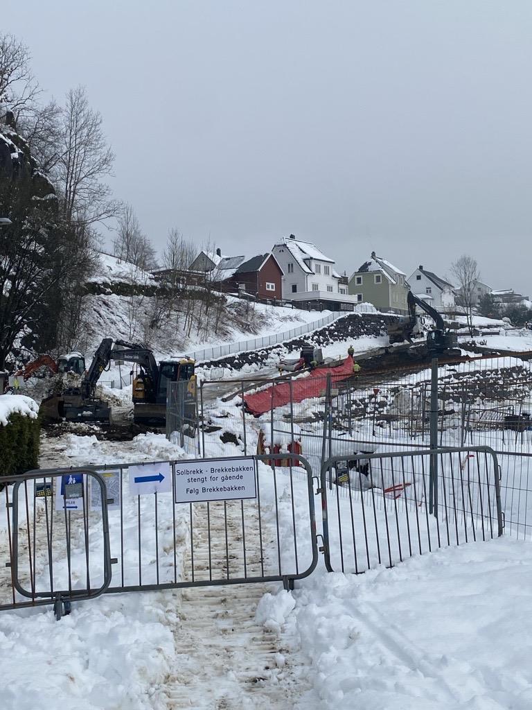 – Foreløpig har vi store maskiner, dype hull og bratte, usikrede skåninger i anleggsområdet, og det er farlig å ferdes der for trafikanter.