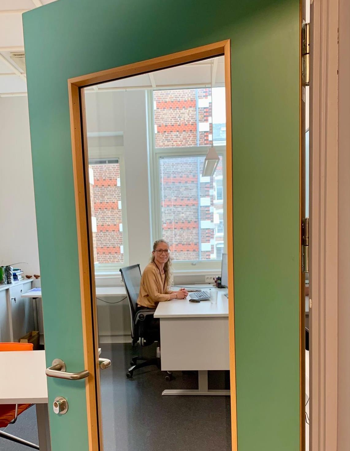 Bygg- og eiendomssjef Heidi Klaveness har fått innsyn i en gammel dør ved å sette inn glass. Får støtte fra Enova