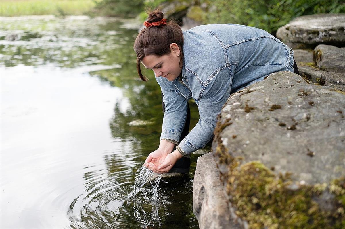 Delprosjektleder Annika Lie i Rogaland fylkeskommune undersøker forholdene i Hålandsvatnet.