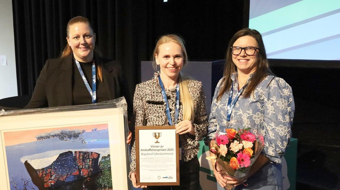 Vinnerne fra Rogaland fylkeskommune: Fra venstre Cathrine Jacobsen Sunde, Karianne Mæle Thuestad og Elin Kro.