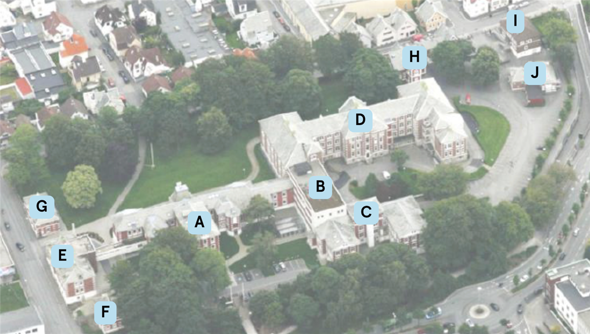 Bygg A, C og D rehabiliteres, samtidig som det oppføres to nybygg, B1 og C1. C2 er det ikke satt av midler til på nåværende tidspunkt, men bygget kan oppføres senere. Bygg E, F og G settes av til Akropolisvisjonen.
