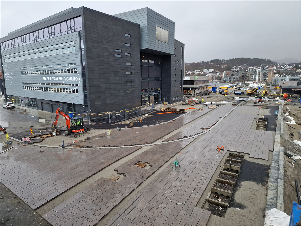 I Sandnes sentrum har bussvei-prosjektet lagt stein på Olav V's Plass i Sandnes sentrum sidan starten av november.