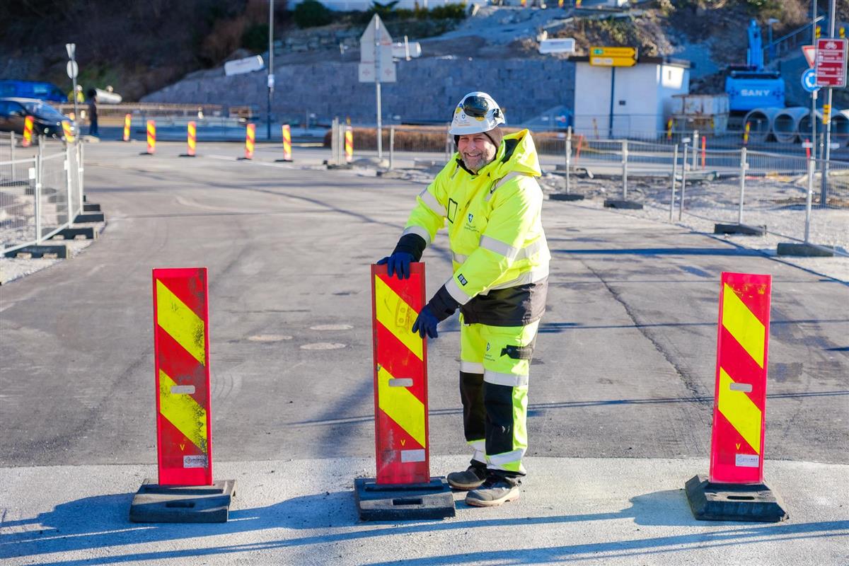 – Vi er opptatt av å sikre trygge og tydelige ruter for gående og syklende også mens byggearbeidet pågår. Erfaringsmessig vil det ta noen dager før det nye trafikkmønsteret har gått seg til. Vi følger med, og vurderer behovet for eventuelle tiltak fortløpende. Vi håper derfor folk viser litt ekstra tålmodighet, sier Kleven.