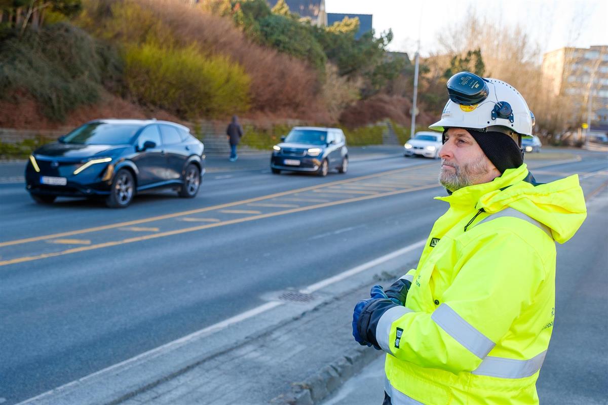Prosjektleder Bjørnar André Kleven kjenner det kribler litt i magen når han må stenge veien som over 9 000 biler benytter hver dag.Gående og syklende