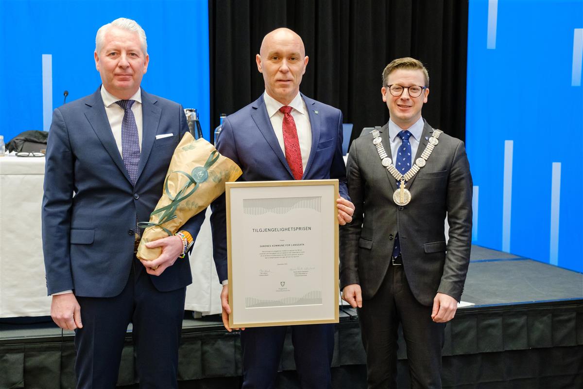 Avdelingsleder for vei- og trafikk i Sandnes kommune, Trond Kjærstad og ordfører i Sandnes kommune, Kenny Rettore ble tildelt Tilgjengelighetsprisen 2023 av fylkesordfører Ole Ueland i fylkestinget.– I år var det mange nominasjoner til prisen, og det er gledelig å se at vi har så mange aktører som står på for å få en mer universelt utformet region, sa fylkesordfører Ole Ueland i fylkestinget.