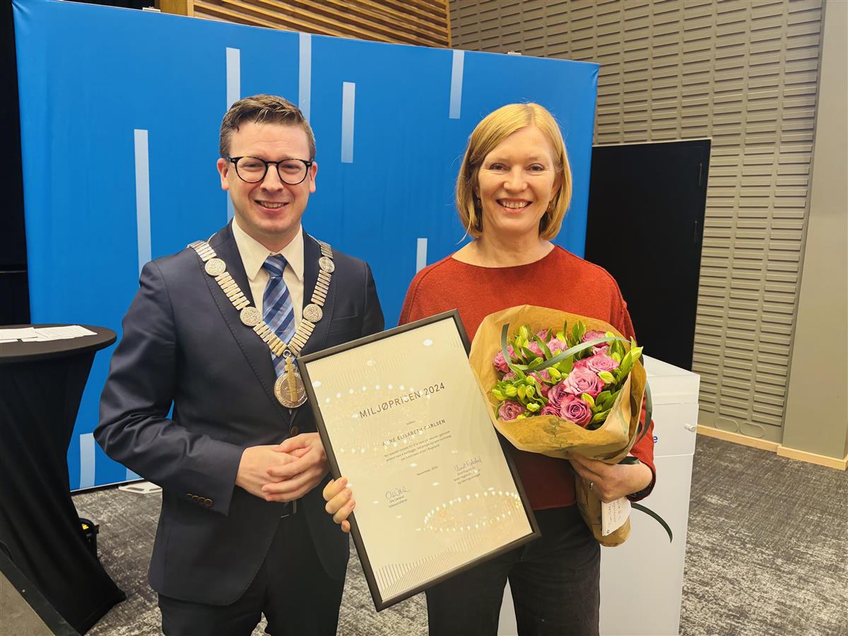 – I år er det en stor glede å annonsere at årets miljøpris går til Anne Elisabeth Carlsen for sitt enestående arbeid mot fremmede skadelige arter. Årets vinner viser vei mot en mer bærekraftig fremtid, der vi aktivt beskytter og bevarer vårt lokale biologiske mangfold, sier fylkesordfører Ole Ueland, som sto for prisutdelingen under årets siste fylkesting.
