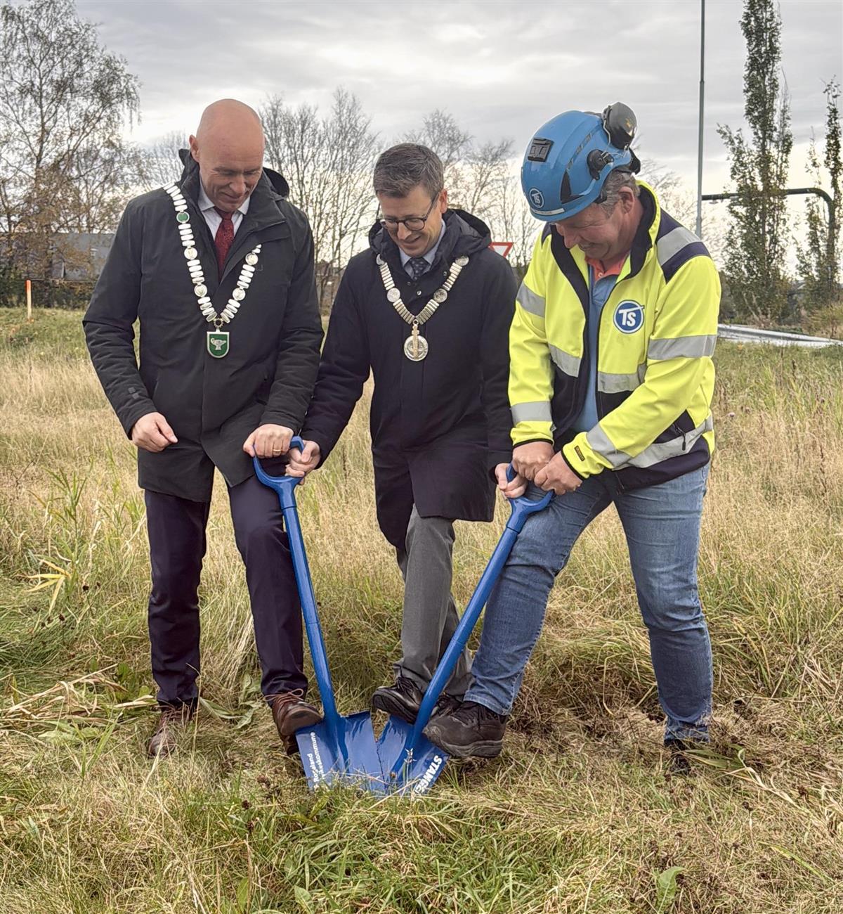Spaden i jorden markerer oppstart av oppgraderingen av Oalsgata.
