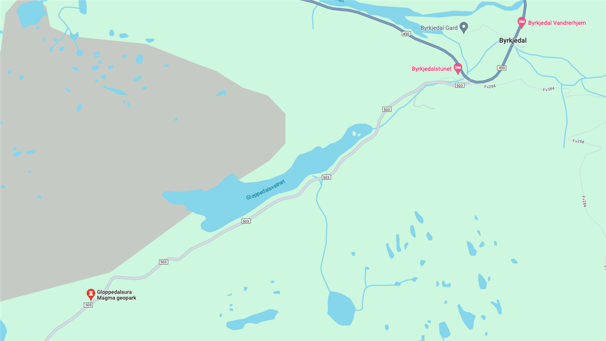 Veien langs Gloppedalsvatnet blir stengtFørste dag veien stenges er mandag 6. mai. Denne dagen blir Gloppedalsvegen stengt klokka 09.00 – 20.00. Fra Bjerkreimssiden på fylkesvei 503 er det mulig å kjøre til rasteplassen i Gloppedalsura.