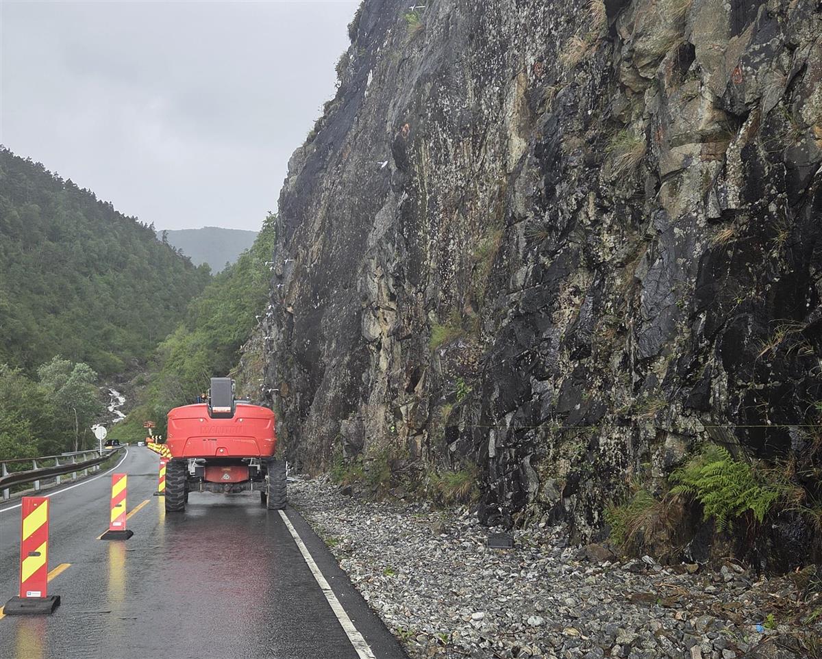 Stenger vei ved Åsjuvet periodevis fra 4. augustSaudavegen fylkesvei 520 ved Åsjuvet i Sauda blir stengt periodevis mandag til torsdag, mellom klokken 10.00 og 14.00. Arbeidet starter 4. august, og fjellsiden vil være ferdig sikret i høst. Publisert av Nora Marie Mjølhus Publisert 01.08.2025 10.22 Rogaland fylkeskommune skal skredsikre fjellsiden.Rogaland fylkeskommune gjenopptar arbeidet med å skredsikre fjellsiden ved Åsjuvet, og veien vil være stengt i perioder med 50 minutter av gangen, og 10 minutter trafikkavvikling.Slik ser trafikkavviklingen utstengt 10.00 – 10.50 åpent 10.50 – 11.00 stengt 11.00 – 11.50 åpent 11.50 – 12.00 stengt 12.00 – 12.50 åpent 12.50 og 13.00 stengt 13.00 og 13.50 Etter klokken 14.00 blir trafikken dirigert manuelt, med inntil 15 minutters ventetid. Åsjuvet ligger åtte kilometer fra Ropeid ferjekai mot Sauda. Entreprenør er Jostein Myge AS med Risa AS som underentreprenør på trafikkavvikling og fjellsikringsarbeid. Bussen følger vanlig rutetid, og entreprenøren stopper arbeidet for kjøretøy i utrykning. Gjenopptar arbeidetÅsjuvet i Sauda har tidligere vært stengt fra 23. juni til 10. juli i forbindelse med skredsikring. Fra 4. august fortsetter arbeidet.– Arbeidet for entreprenøren fortsetter, og de skal nå sette opp fanggjerder og isnett som fanger opp is, stein eller jord som kan komme ned fjellsiden. Vi beklager ventetid for bilistene og eventuelle ulemper på grunn av arbeidet, sier prosjektleder i Rogaland fylkeskommune, Torbjørn Jektnes.