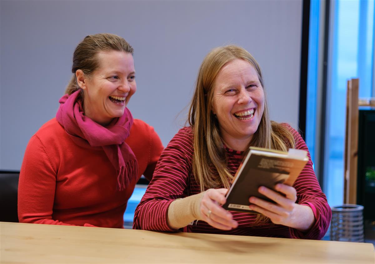 - Dette har vært lærerikt og veldig nyttig. Alle er veldig fornøyd, oppsummerer prosjektleder Susanne Viste Bie (til venstre) sammen med forfatter Lene Ask fra Stavanger.I høst ga hun ut boken «Ikke visne», som er tilpasset barn og unge over 12 år. I løpet av to dager i litteraturlaboratoriet har hun fått gode innspill og ideer til hvordan hun skal formidle historiene sine til ungdomsskoleelever.