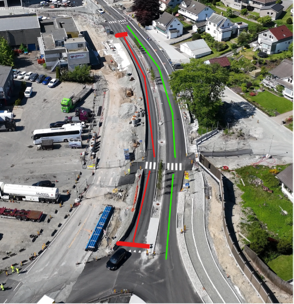 Tregere trafikkflyt i Stavangerveien tirsdag 3. juniTirsdag 3. juni fra klokken 09.00 blir det manuell dirigering i deler av Stavangerveien. Illustrasjon/dronefoto over viser området der det blir manuell dirigering tirsdag 3. juni. Sørgående kjørebane stenges for trafikk, og trafikk i begge retninger må veksle på å bruke den nordgående kjørebanen.Arbeid med vann- og avløpsgrøft mellom Seljeveien og Lurabyen vil denne dagen foregå tett på den sørgående kjørebanen. All trafikk legges derfor over i den nordgående kjørebanen. Det blir manuell dirigering fra avkjørselen til Lurabyen og ned til rundkjøringen ved Håholen. Varigheten av arbeidene er usikker, men kjørende må belage seg tregere trafikkflyt frem til klokken 20.00 tirsdag kveld. De som har mulighet, bør derfor velge alternativ rute denne dagen.Les mer om bussveiprosjektet på Lura (Forussletta–Stavangerveien). Sist endret 30.05.2025 08.17