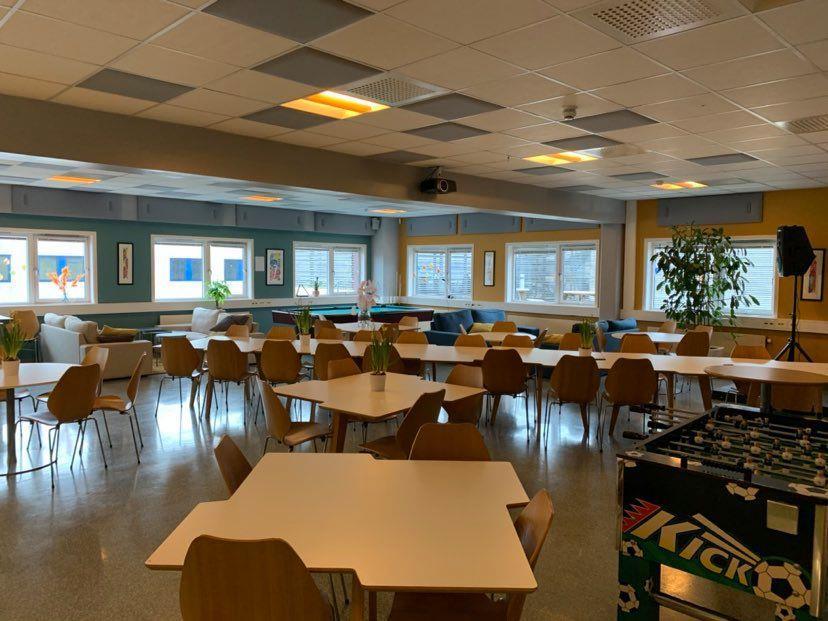 Vi har en flott kantine og kjøkken. Her har vi massevis av kjekt utstyr som trengs for å lage alle de digge måltidene og bakverkene vi lager. Egen kaffebar har vi og, hvor vi kan lage alle slags kaffedrikker. Kun fantasien stopper oss i hva vi kan lage. Vi har fokus på at vi lærer best når vi gjør det sammen, og har det gøy mens vi jobber.