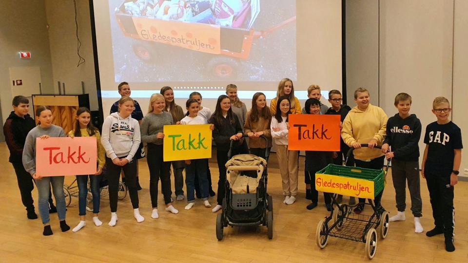Stor glede for Bragdpris-penger Erling Braut Haaland gir Bragdprispengene sine på 50 000 kroner til Gledespatruljen ved Rosseland skule på Bryne. Publisert 29.10.2021 kl. 14.27