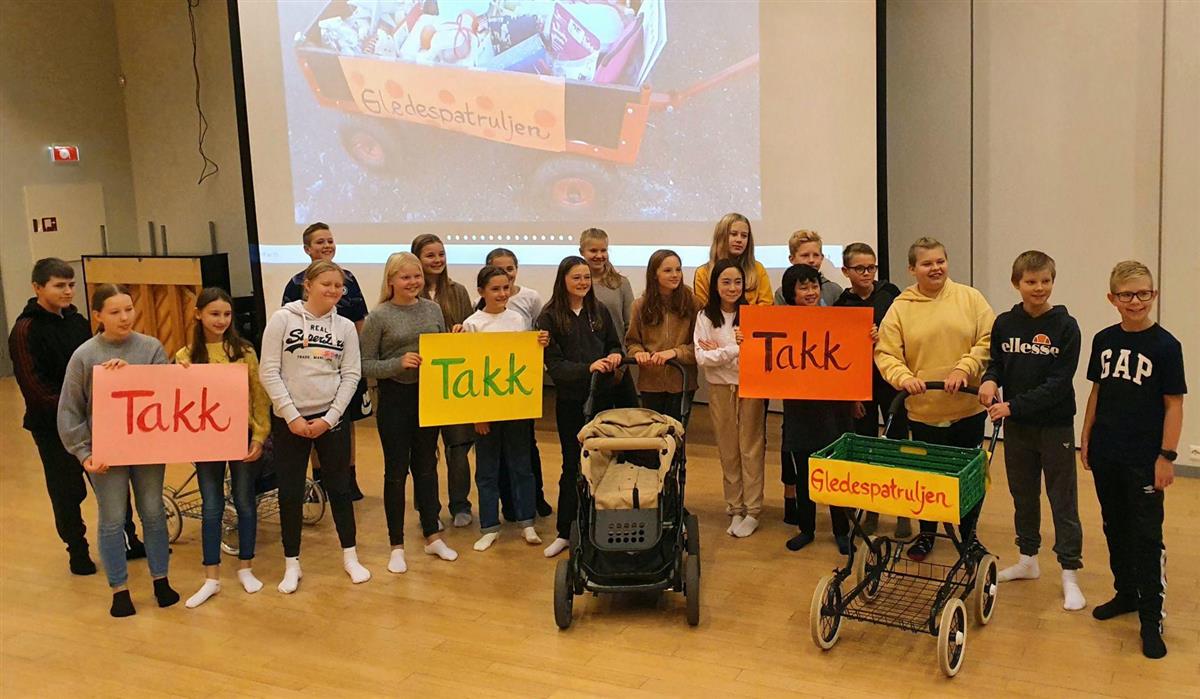 – I fjor var det selveste Erling Braut Haaland som fikk Bragdprisen. Det var veldig fortjent og kjekt at prisen gikk til han som er et stort forbilde for mange, både som en av verdens beste fotballspillere, men også som en jordnær person som er opptatt av andre mennesker og hvor han kommer fra, sa Jon Inge Zazzera, seksjonsleder for allmenn kultur, når han møtte syvendeklassingene i Gledespatruljen med den gledelige overraskelsen.