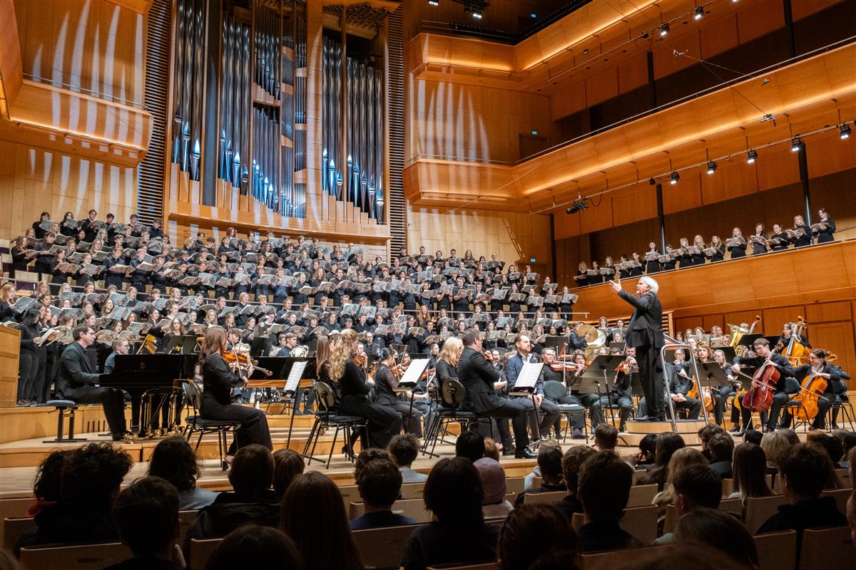 Mesterverket Carmina Burana fremført av elever fra Skeisvang, Vågen og Stavanger katedralskole i samarbeid med musikkstudenter fra UiS.– Det er unikt i nasjonal sammenheng at så mange utdanningsinstitusjoner samles om å framføre et klassisk mesterverk sammen, sier Kristin Storhaug, avdelingsleder for musikk, dans og drama ved Stavanger katedralskole.