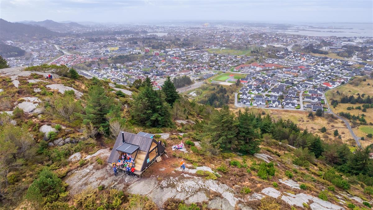 Haugesund kommune - NutenHaugesund kommunes andre dagsturhytte ligger på Nuten, nord i Byheiene, med nydelig utsikt over hele byen. På denne siden Kort om Nuten Åpent: hele åretOvernatting: neiPasser for: barn og voksneTuravstand: 1,5 kilometer hver veiUniversell utformet adkomst: neiToalett: neiBålpanne: neiOpplyst sti: nei KartFinn Nuten på kartetTilkomst og parkering Fra Tittelsnesvegen (Fylkesvei 547) tar du av på Austrheimsvegen. Sving til venstre inn på Udlandsvegen og så til høyre inn på Stallvegen. Det er en stor parkeringsplass bak Haugesund rideklubb (stallen). Kollektivtransport: Ta buss 201 mot Bleikemyr. Gå av på Bevertunet. Det er 750 meter å gå til merket turløype begynner i Stallvegen. Turbeskrivelse til hyttaStien er merket fra parkeringsplassen i Stallvegen. Vi følger Hovslagervegen til stien ved Kleivane. Etter ca. 250 meter dreier stien mot nord. Vi tar til venstre ved første stidelet, som er skiltet, og etter en mindre stigning holder vi høyden nordover til Nuten. Turen har en stigning på 141 høydemeter.AvstandTuren har en stigning på 141 høydemeter. Hver vei er cirka 1,5 kilometer.Turen tar sirka 30 minutter hver vei.Bilder fra Nuten Nuten i soisale medierFølg dagsturhyttene i Haugesund kommune på FacebookKontaktinformasjon Ingvild Bjerkelandfrivillighetskoordinator i Haugesund kommuneSend e-post: Ingvild Bjerkeland Sist endret 18.08.2025 14.04