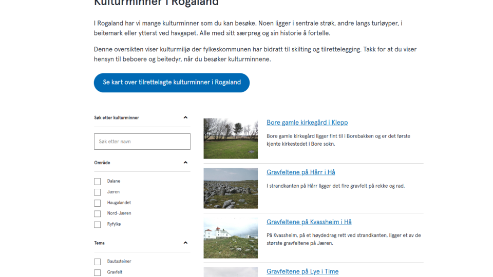 Opplev Rogalands kulturarv – besøk et kulturminne Rogaland har et rikt kulturminnelandskap: fra gravminner og helleristninger til historiske gårdsanlegg, kirkesteder og bygg med arkitektonisk verdi. ... Publisert 07.10.2025 kl. 13.56