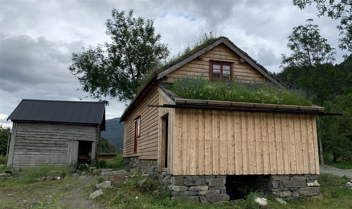Skuten er i sin helhet bygget opp på nytt med nytt bindingsverk. Stabburet som står nærmest bolighuset, er kanskje det neste prosjektet.– Min bestemor er vokst opp i dette huset. Hun giftet seg til gården Ritland noen få kilometer lenger opp i dalen. Der har jeg drevet gården videre etter min far. Mine fire ugifte onkler bodde i dette huset i flere tiår. Huset var bebodd til utpå 90-tallet.