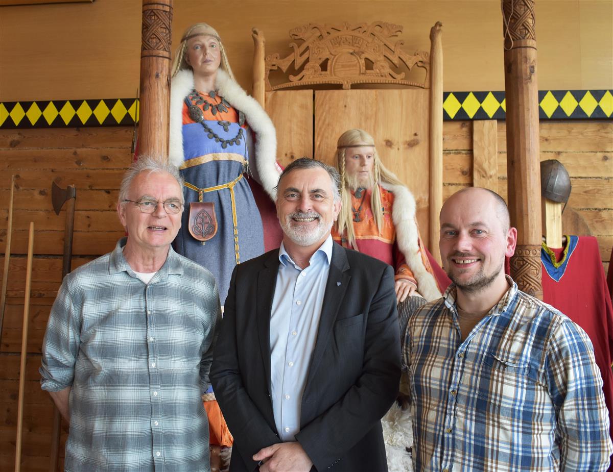 Tre personer som deltar på et møte på Avaldsnes. Foto - Klikk for stort bildeJan Geir Auestad, Svein Erik Indbjo og Håkon Reiersen.