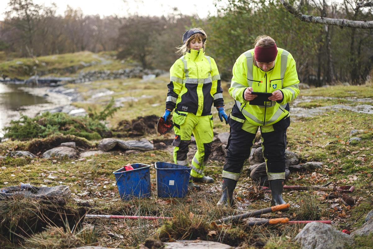 For å kartfeste kulturminner bruker arkeologene posisjonstjenesten CPOS, som registrerer punkter og markerer kulturminnene helt ned på centimetersnivå.