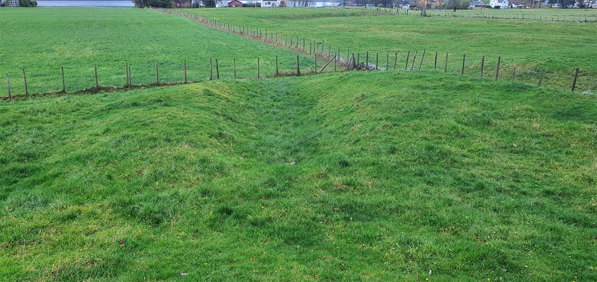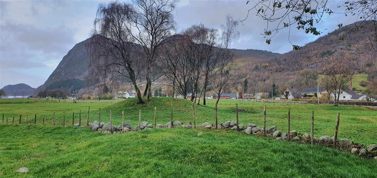 Gravfeltet ligger på en liten slette vest i Årdal, ikke langt fra fjorden. Trolig har kulturminnene ligget nært vannkanten, synlig fra fjern og nær. Feltet består av minst 22 graver, og to mulige nausttufter, men det kan ha vært større, da et par graver skal ha blitt fjernet tidlig på 1900-tallet.