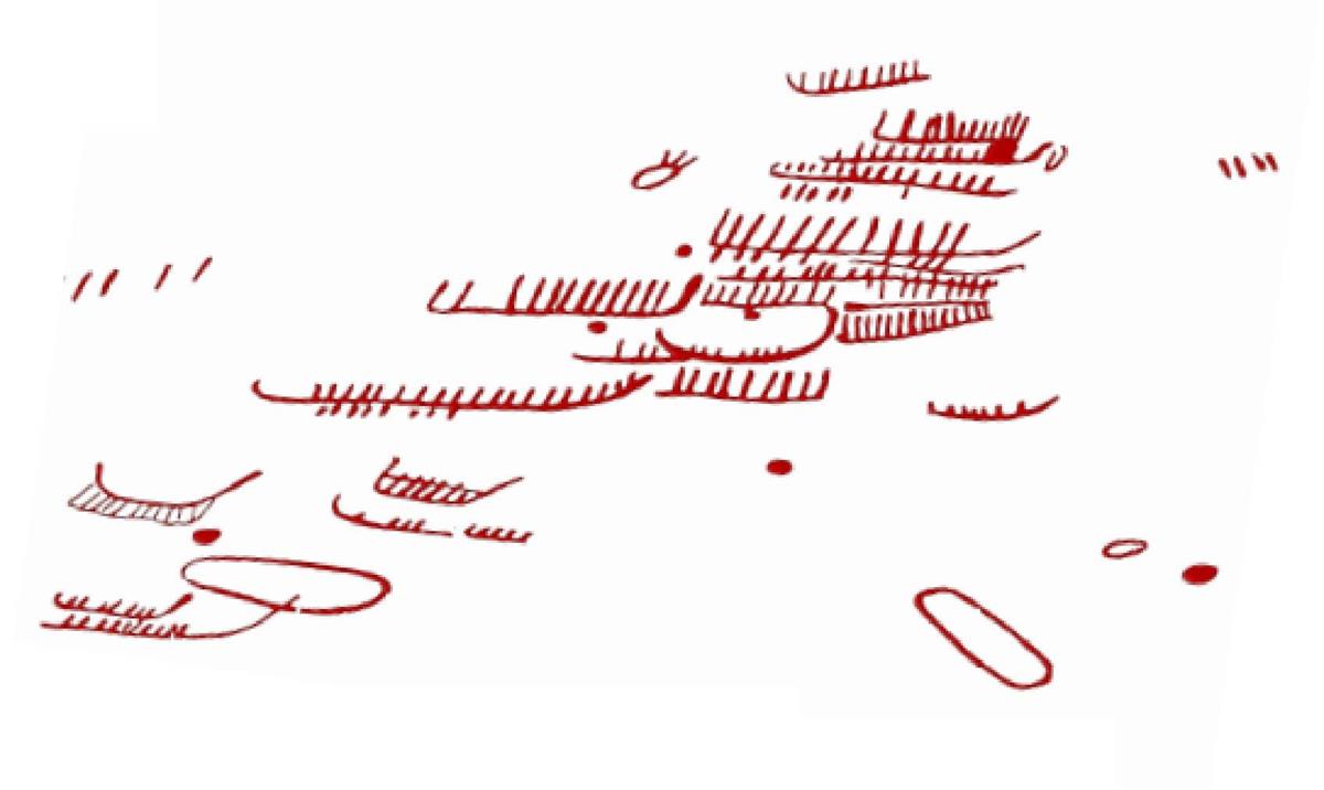 På Aubeberget finnes det ristninger av både skip, hjulkors, sirkler, solsymboler og fotsåler.