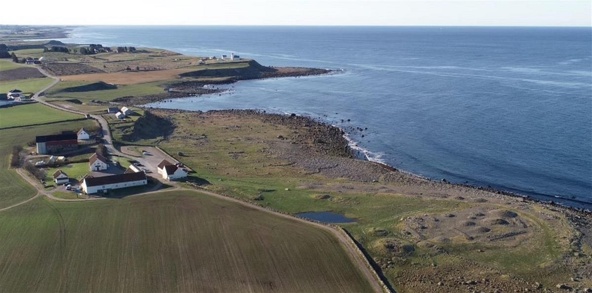 Jærkysten med Hå gamle prestegård og strandgravfeltet i forgrunnen