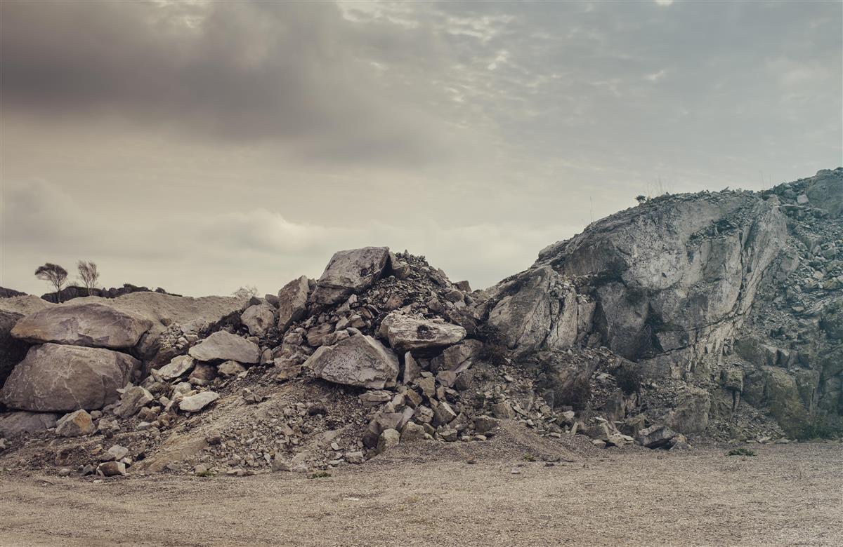 Store steiner i steinbrudd - Klikk for stort bilde Basert på de store mengdene overskuddsmasser som skal håndteres fremover, og ønsket om en bærekraftig håndtering av disse, ble det identifisert et behov for å etablere ett eller flere sentrale mottaksanlegg for overskuddsmasser.