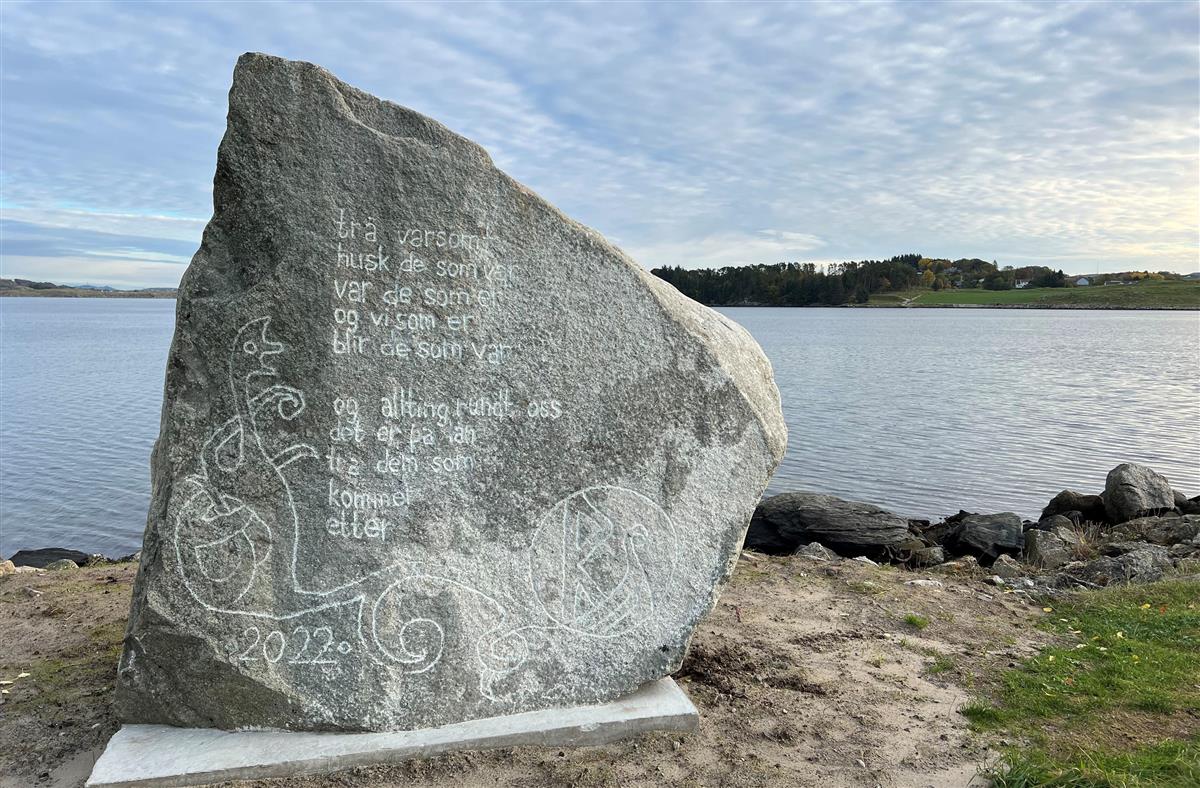 I Sømmevågen skal denne steinen stå som eit fysisk minne frå Rikssamlingsjubileet.