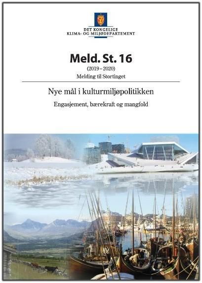 Stortinget vedtok våren 2020 ei ny stortingsmelding for kulturmiljøfeltet; «Stortingsmelding 16 - Nye mål i kulturmiljøpolitikken». Den inneheld nye nasjonale mål og bevaringsstrategiar: