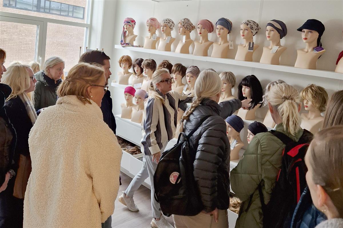 På buss-safarien besøkte blant annet yrkesrådgiverne en frisørskole. Der ble de vist hvordan ulik parykker ble laget. Parykkene blir ofte brukt av personer med sykdommer som gir hårtap.