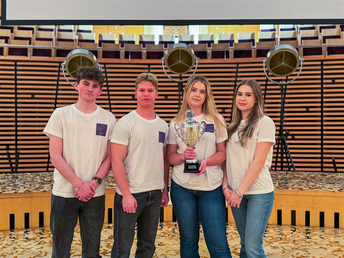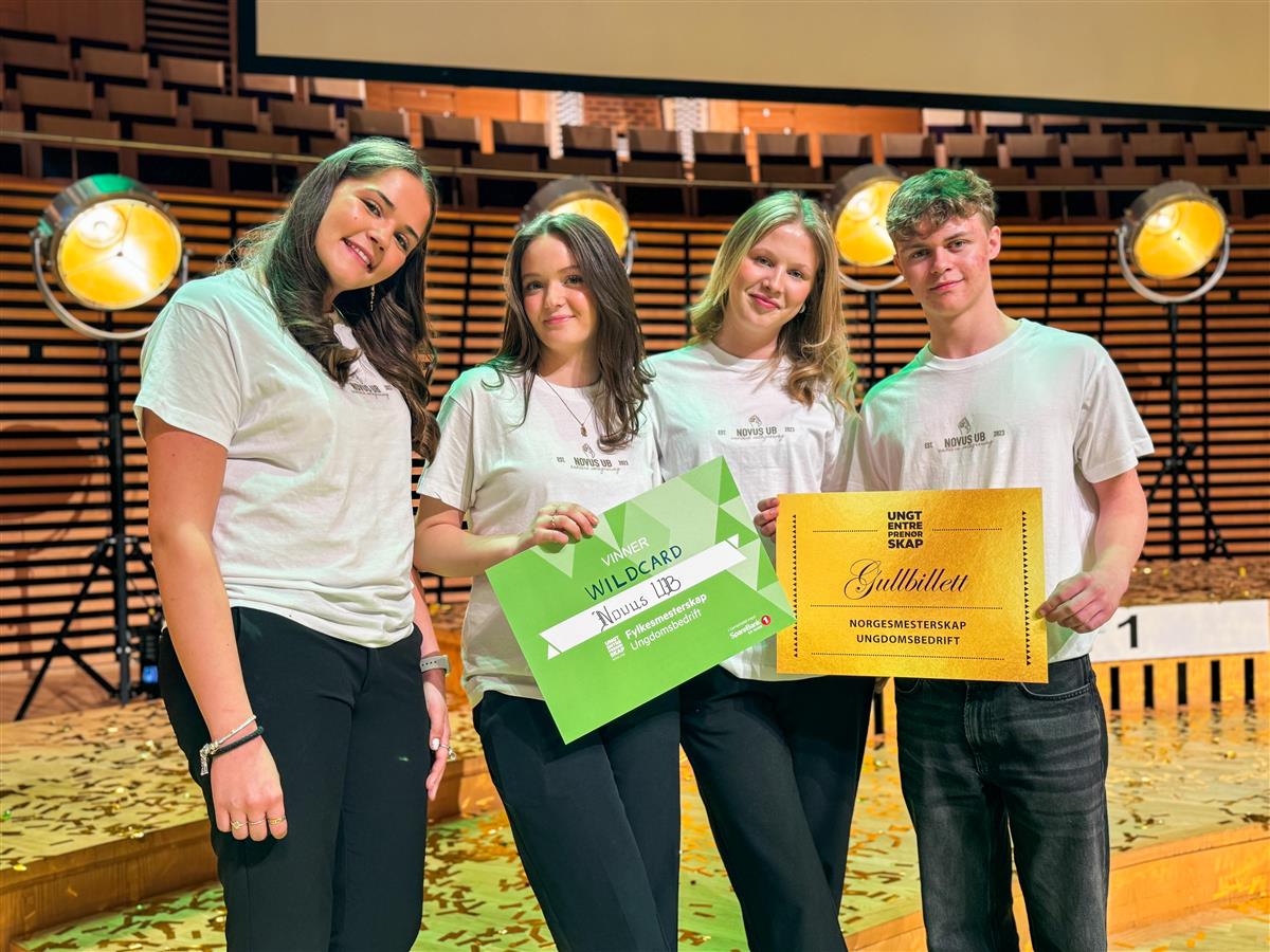 Daniel Hjellestad Helland, , Vendelinn Rosså, Lisa Bredal Larsen og Malene Nilsen Sunde er elever på Hetland videregående skole og startet ungdomsbedriften Novus.