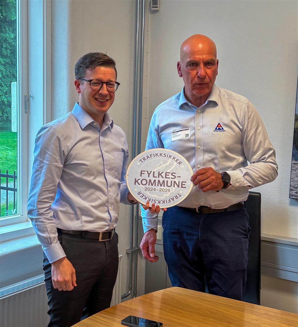 Fylkesordfører Ole Ueland og Harald Heierås i Trygg Trafikk.