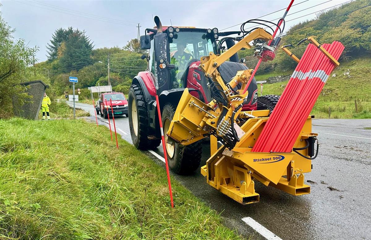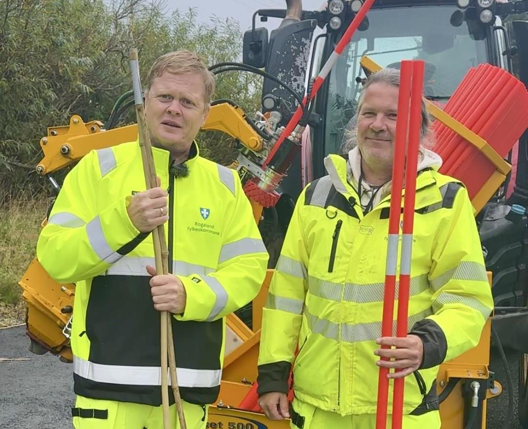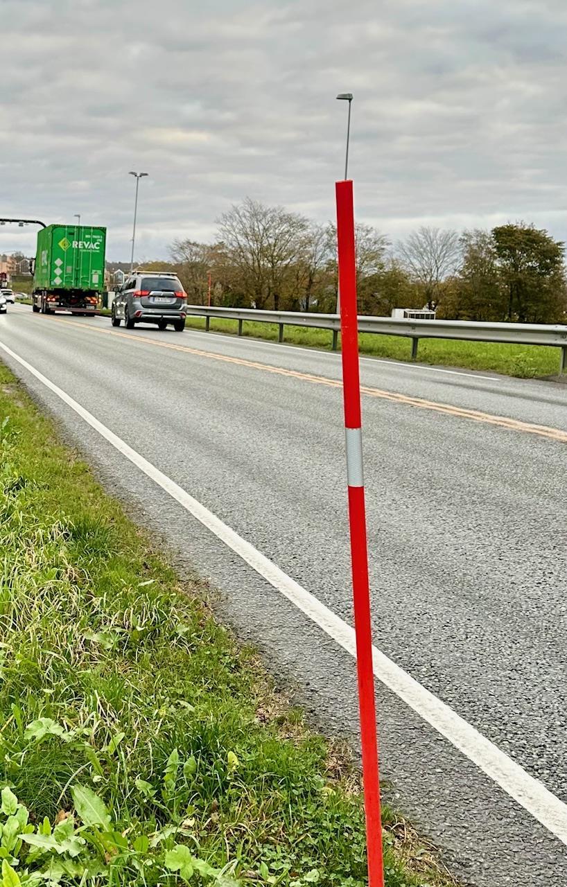 – Stikkene blir hver høst satt ut så snart det begynner å bli mørkt, for å vise bilene hvor veien svinger. Vi kaller det for optisk leding. Stikkene er altså ikke kun for snø og brøyting som mange tror, forteller Ragnar Enge som jobber med drift og vedlikehold av fylkesveiene i Nord-Rogaland.