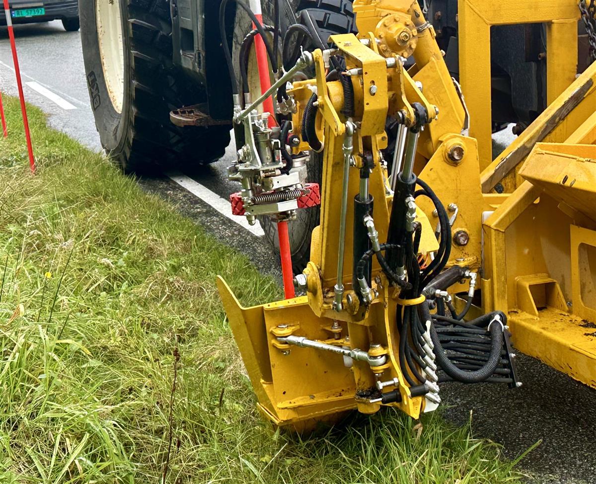 En "arm" borrer hull, en annen setter brøytestikka fast i bakken.