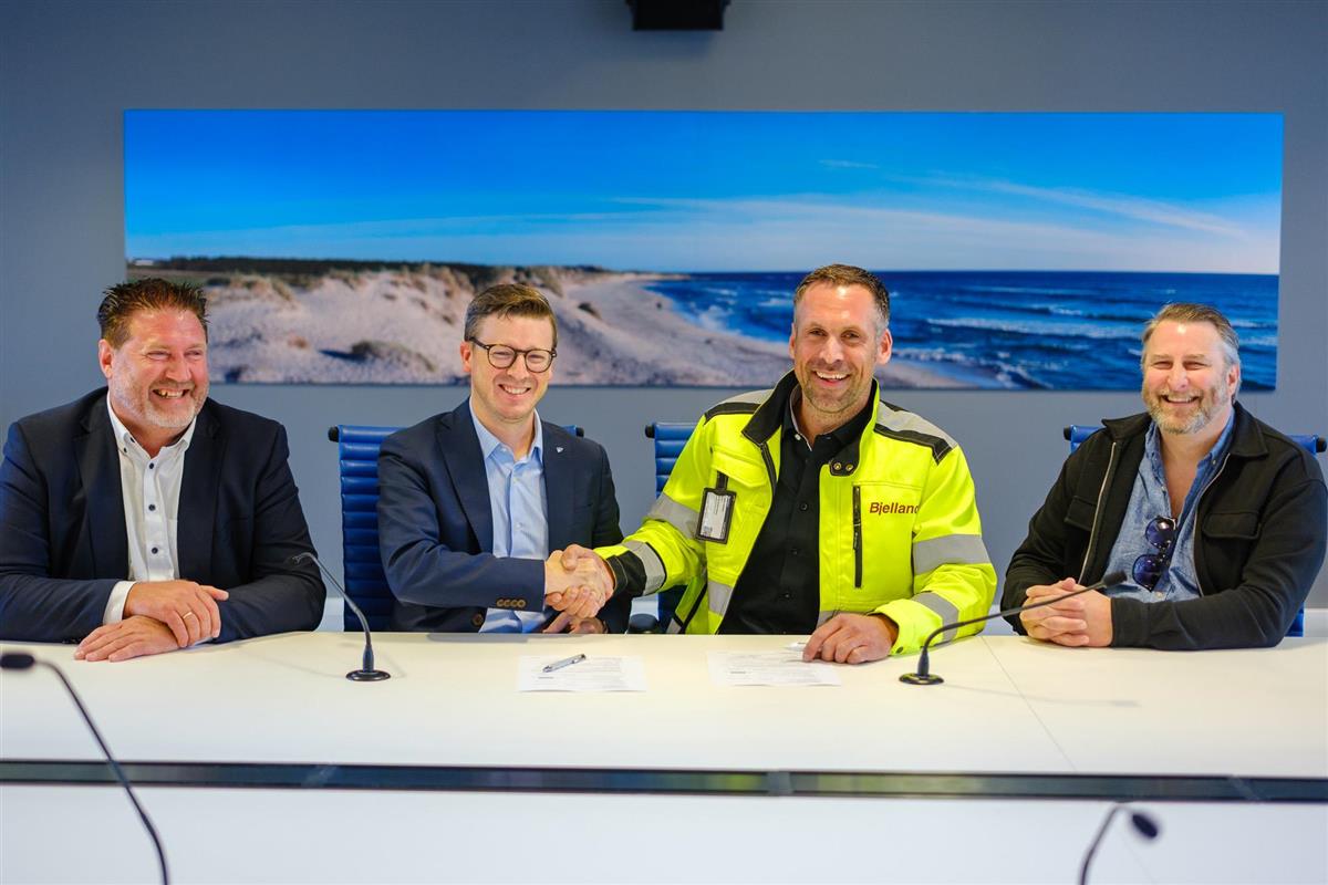 Avtalen ble signert av fylkesordfører Ole Ueland og daglige leder i Bjelland AS Joakim Hetland – og det var både latter, smil og god stemning rundt bordet. Selvfølgelig ble det feiret med både kake og kaffi – akkurat slik det skal være når store kontrakter landes!