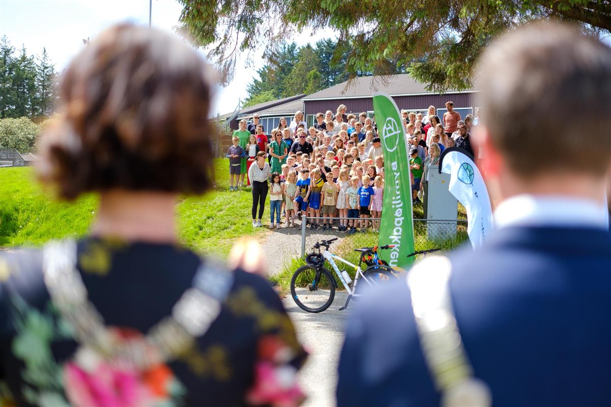 Den 2,7 kilometer lange gang- og sykkelveien fra Håland skole, via Havnevegen til Ølbergveien i Sola kommune ble åpnet med brask og bram i nydelig sommervær. Det var stort oppmøte når fylkesordfører Ole Ueland klippet snora og offisielt kunne erklære den nye gang- og sykkelveien for åpna.