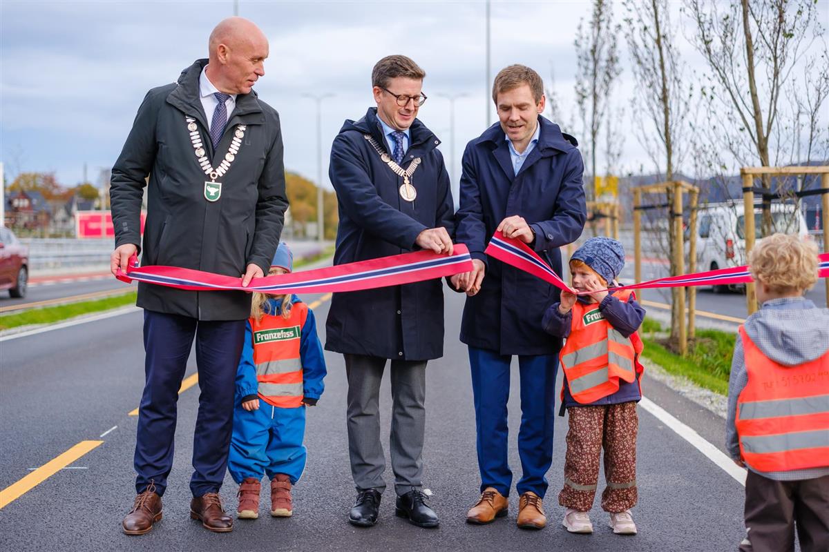 Ordfører i Sandnes kommune Kenny Rettore, fylkesordfører Ole Ueland og statssekretær Tom Kalsås fikk æren av å klippe snoren sammen med barn fra Geitastova barnehage.– Gratulerer med dagen, så utrolig flott det har blitt her på Forus! Det er alltid veldig kjekt å få være med og åpne nye strekk på Bussveien. Og dette er det tredje delprosjektet som står ferdig bygget nå i høst, det er imponerende. Hvert delprosjekt som åpner vil gjøre hverdagen enklere, bymiljøet bedre og fremtiden grønnere for alle som bor og ferdes i denne delen av fylket vårt, sa fylkesordfører Ole Ueland.