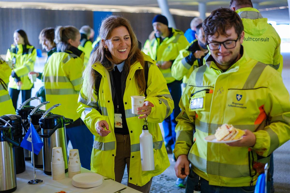 Kake og kaffe gir alltid god stemning under veiåpninger.– Nå begynner vi å få en skikkelig smakebit av hva en sammenhengende Bussvei er, med raskere og mer behagelige reiser, der bussen kjører uhindret fra annen trafikk. Med åpningen her på Forus har vi nå fått sammenhengende Bussvei fra Kvadrat i sør til Hillevåg i nord, sa Harald Bøhn avdelingssjef for samferdselsprosjekt i Rogaland fylkeskommune.