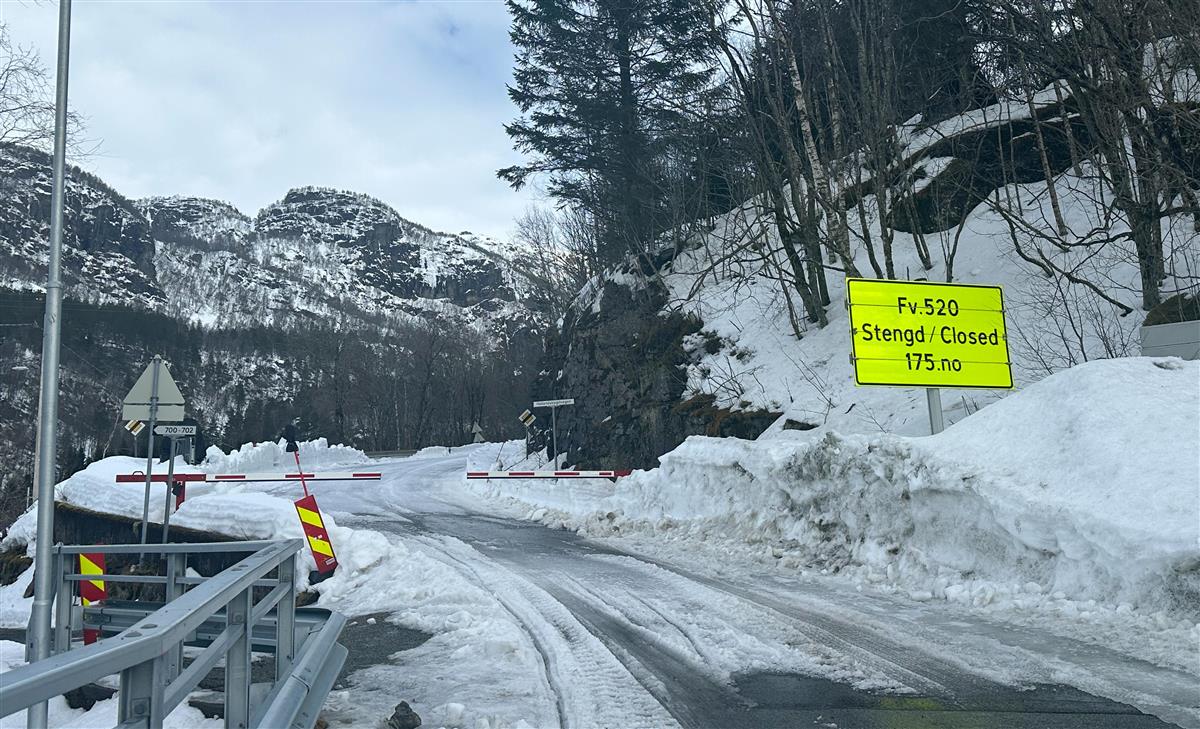 Til tross for lite snø i fjellet, blir fylkesvei 520 over Saudafjellet til E 134 ved Håra stengt for vinteren 19. desember klokka 19.00. Veien holdes åpen til Tverrdalen fra Saudasiden inntil videre.
